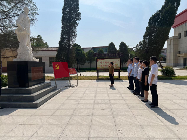 在楊水才同志的塑像前,全體黨員整裝肅立,表達對英雄的敬慕之情;面向黨旗,重溫入黨誓詞,回顧莊嚴承諾。